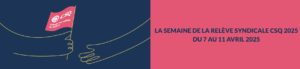 Afin de renouveler notre action syndicale et préparer l’avenir, une semaine est consacrée à la relève syndicale. Depuis 2017, la CSQ et ses affiliés soulignent l’apport de la relève au mouvement syndical par diverses activités et rassemblements, dans toutes les régions du Québec.